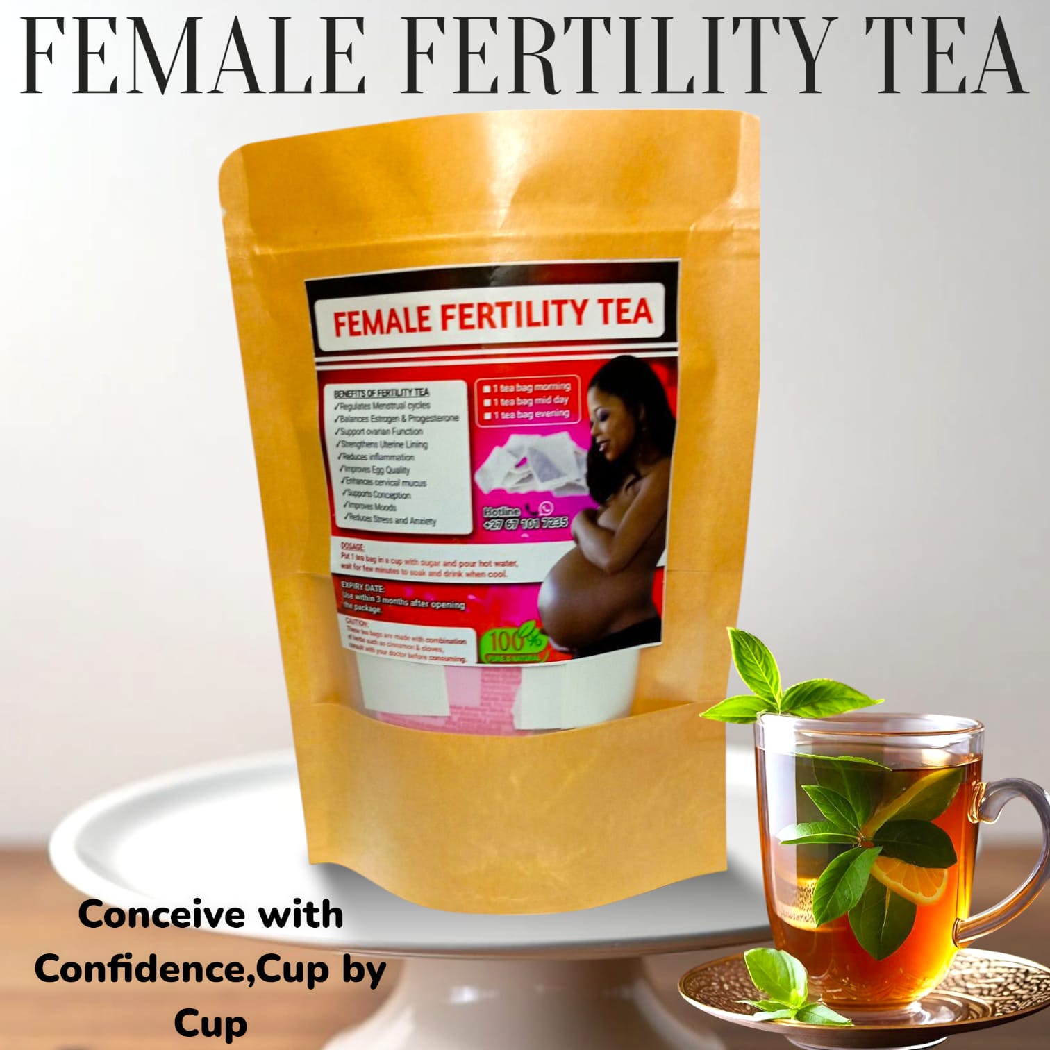 Female fertility tea is a blend of herbs and botanicals designed to support women’s reproductive health, enhance fertility, and promote overall well-being. Here are some benefits: